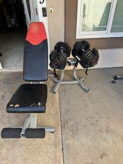 Bowflex adjustable weights 10–90lbs with stand and adjustable bench$480Moreno Valley, CA