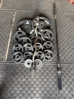 Olympic bumper weights 250lbs total plus 7ft 45lbs bar$300Moreno Valley, CA