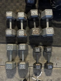 Dumbbells weights 55,40,35,20 pairs 300lbs total prices are in description$245Moreno Valley, CA