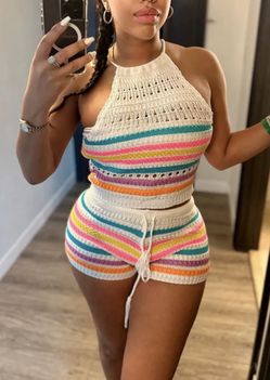 Summer Hot Selling 2023 Knitting Backless Women Suits Colorful Streetwear Women $40Woburn, MA