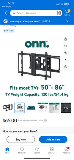 onn. Ultra-slim Full Motion TV Wall Mount for 50" to 86" TVs, up to 20° Tilting$25San Francisco, CA