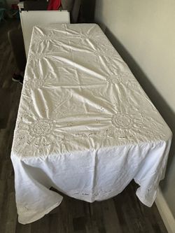 Vintage Embroidered Cutout Floral Tablecloth Rectangle 94x65$40Montclair, CA