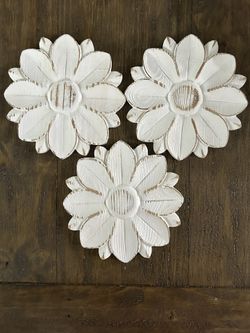🖤Rustic Farmhouse Flower Wall Decor Wood White Wall Art Set Of 3$25Montclair, CA