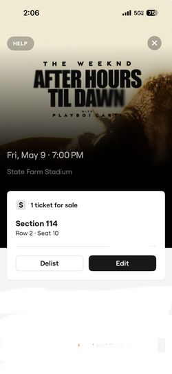 The Weeknd After Hours Til Dawn Tour Silver VIP Ticket Section H-Row 29- Seat 13 Floor Seat$500Phoenix, AZ