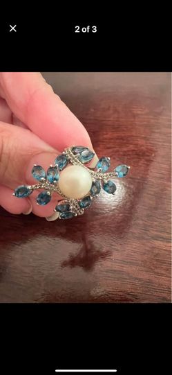 sterling silver blue topaz pearl ring size 6 $50Overland Park, KS