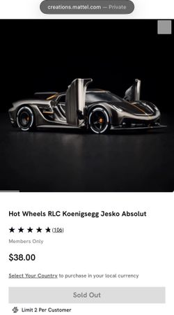 Hot Wheels RLC Koenigsegg Jesko Absolut$60Beaverton, OR