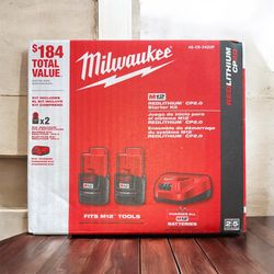 Milwaukee M12 12V Lithium-Ion Compact 2.0 Ah Battery Pack (2-Pack) Starter Kit with Charger$150Houston, TX