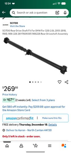 New Rear Drive Shaft Fit For BMW For 320i 2.0L 2013-2018, RWD, (contact info removed)(contact info removed) 986226 Rear Driveshaft Assembly