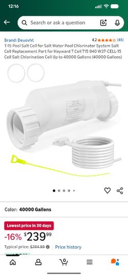 T-15 Pool Salt Cell for Salt Water Pool Chlorinator System Salt Cell Replacement Part for Hayward T Cell T15 940 W3T-CELL-15 Cell Salt Chlorination Ce$100North Canton, OH