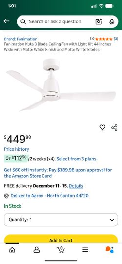 New Fanimation Kute 3 Blade Ceiling Fan with Light Kit 44" Wide w Matte White Finish