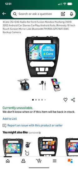 New 10" Touch Screen Bluetooth Radio For 2009-2012 Ford Mustang Fusion Mondeo$90Jackson Belden, OH