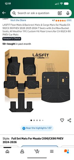 New Custom Fit All Weather Floor Mats Backrest Mats & Cargo For 2024-2026 Mazda CX-90$70Jackson Belden, OH