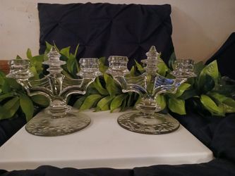 Vintage Tiffin-Franciscan Webwing Candlestick Holders from the Fuchsia Etched Collection $60Los Angeles, CA