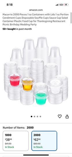 Macarrie 2000 Pieces 1 oz Containers with Lids 1 oz Portion Condiment Cups Disposable Souffle Cups Sauce $30Columbus, OH