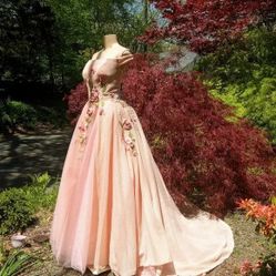 Floral Gown Off the Shoulder Straps Puffy A line Hand Made Floral Dress$515Seymour, CT