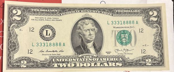 1976 $2 Bill Low Numbers $25Porterville, CA
