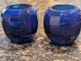 VINTAGE GARDENERS EDEN COBALT BLUE GLASS RIBBED TEALIGHT CANDLE HOLDERS Set Of 2 💙$25Lutz, FL