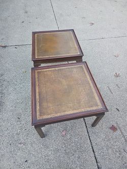 2 Matching Mahogany Leather Top tables 1950s Mid Century $50Medina, OH
