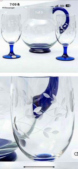 Princess House Heritage Cobalt Blue Stem Iced Tea Glasses and Pitcher.$60Atwater, CA