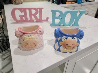 Set of 4 pieces, blue/pink vase and "Girl and Boy" letters. Decoration for use at a gender reveal event.$20Miami, FL