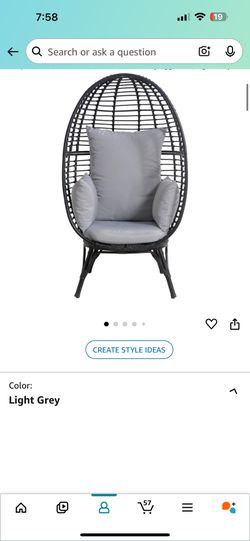 Poppy Outdoor Boho Oversized Cushions, Space-Saving Chic Shaped Patio, Sunroom, or Deck, Stationary Egg Chair, Light Grey$200Windsor Hills, CA