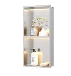 2-Tiers 12x24 Recessed Wall Niche with LED Lights, Brushed Shower Niche Cabinet, Stainless Steel Bathroom Shelf, NO Tile Needed Bathroom Storage Organ$110Fort Lauderdale, FL
