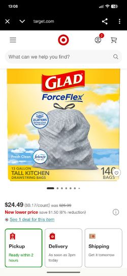 BRAND NEW Glad ForceFlex Drawstring Trash Bags - Febreze Fresh - 13gal/140ct$20Alhambra, CA