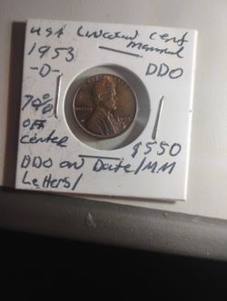 1953 Lincolin Wheat Cent 75%off Center DDO Date/ Mint Mark$925Durham, NC