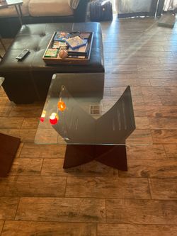 Two Cherry wood glass side tables$25Phoenix, AZ