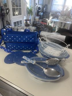Temptations blue polkadot bakeware set with tote$20Suffolk, VA