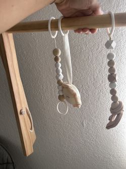 Costway Foldable Wooden Baby Gym with 3 Wooden Teething Toys Hanging Bar Natural$10Miami, FL