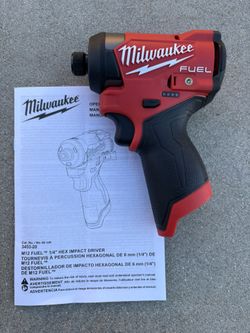 Milwaukee Fuel M-12 1/4” Hex Impact Driver. Tool Only - 3453-20$85Perris, CA