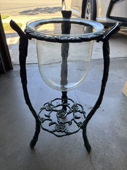 American Large Vintage Cast iron floor Standing Candle Holder and Glass Insert . 12 X 26 Inches Tall .$55Irvine, CA