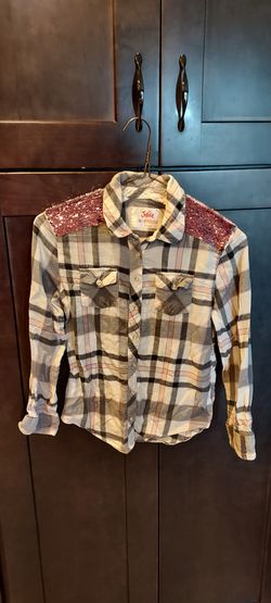 Justice Girl's Flannel Longsleeve Shirt with Pink Sequin Shoulders, Size 10$5Brandon, FL