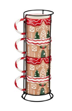 Set Of 4 Gingerbread House Mugs With Rack$15West Covina, CA