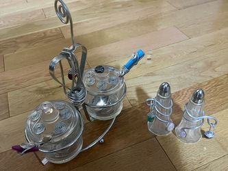 Art Deco Wire Beads Condiment Caddy Jars Spoons Salt Pepper Shaker$35Batavia, IL