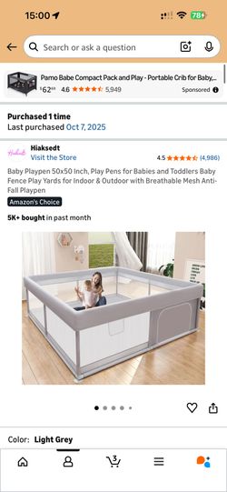 SoldBaby Playpen 50x50 Inch, Play Pens for Babies and Toddlers Baby Fence Play Yards for Indoor & Outdoor with Breathable Mesh Anti-Fall Playpen$10West Los Angeles, CA