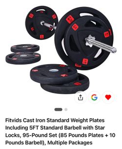 Fitvids 95LB Barbell Weight Set 5FT Bar$100Turlock, CA