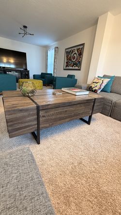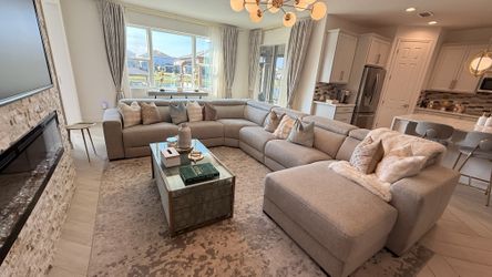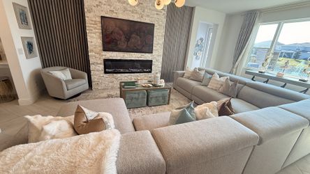 SoldLarge sectional with adjustable headrest with recliner seat/ coffee table/ 2 ottomans and swivel Chair$2,999St. Cloud, FL