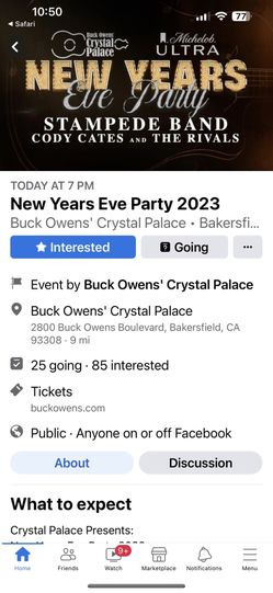 Crystal Palace Tickets $210Bakersfield, CA