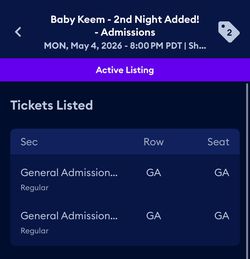 Baby Keem Monday 5/4 Tickets$350Los Angeles, CA
