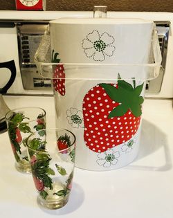 1970’s Stotter Strawberry Ice Bucket, lucite handles$25Olympia, WA