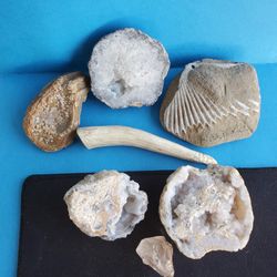 Lot of 7 pieces of Crystal Rock, Geodes, Fossils & Petrified Antler.$12Huntington Beach, CA