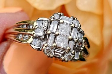 Vintage Estate 14K Gold Baguette, Princess & Brilliantcut 1.50TCW Solitaire Illusion Engagement Ring / Diamond Cluster Ring$1,200Winfield, IL