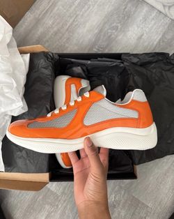 Prada Men's America's Cup Patent Leather Sneakers Papaya Silver, Size 10 US/ 9UK$595Chicago, IL