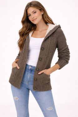 Brown Hooded Knit Cardigan Sweater – Sherpa Lined | Size XS$14Bellflower, CA