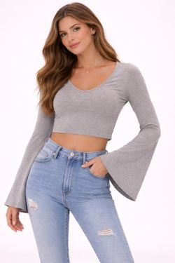 SHEIN Gray Long Sleeve Crop Top | Flare Sleeve | Size L 8/10$12Bellflower, CA