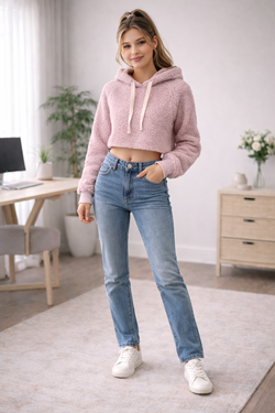 Derek Heart Cropped Pink Sherpa Hoodie – Cozy Teen Casual Size M$18Bellflower, CA
