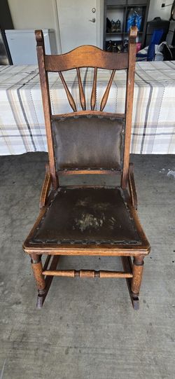 Antique Oak Rocking Chair Leather Seat 1920s$50Cave Creek, AZ