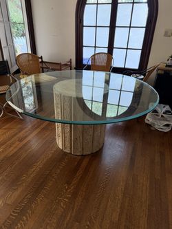 Vintage Italian Travertine Pedestal Dining Room Glass Table $1,000Long Beach, CA
